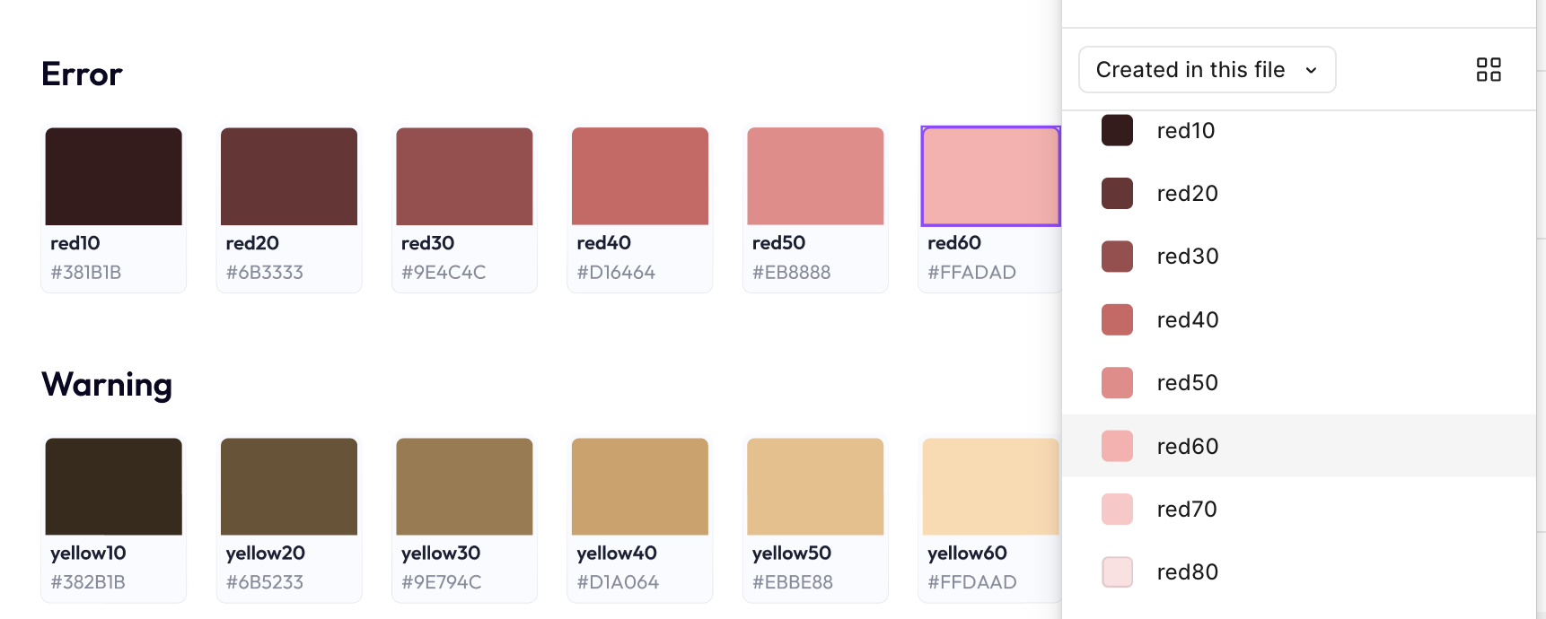 Mirror / tweak the HEX codes for Dark (e.g., swap 10 ↔ 80, 20 ↔ 70, etc.).